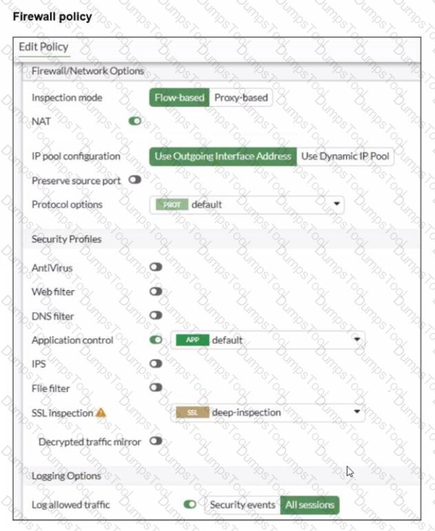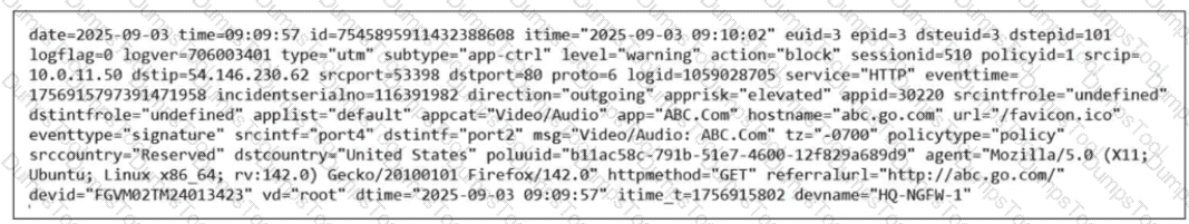 An administrator has configured an Application Overrides for the ABC.Com application signature and set the Action to Allow This application control profile is then applied to a firewall policy that is scanning all outbound traffic. Logging is enabled in the firewall policy. To test the configuration, the administrator accessed the ABC.Com web site several times.