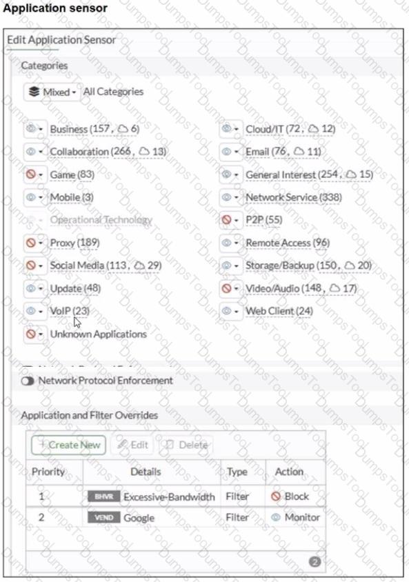 You have implemented the application sensor and the corresponding firewall policy as shown in the exhibits.