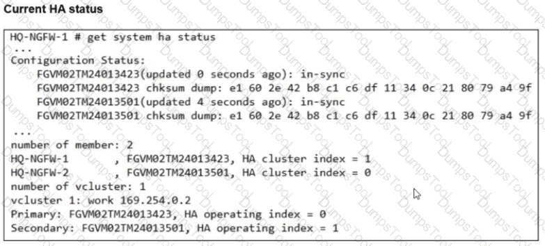 The administrator must set the monitored port1 to down on HQ-NGFW-1.