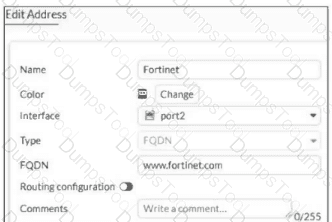 The correct answer is D . The exhibit shows an FQDN address object (www.fortinet.com), but Routing configuration is disabled. FortiGate does not make that object available as a selectable destination for named static routes until this option is enabled.