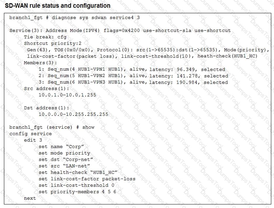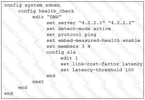 You configured an SD-WAN rule with the best quality strategy and selected the predefined health check, Default_FortiGuard, to check the link performances against FortiGuard servers.