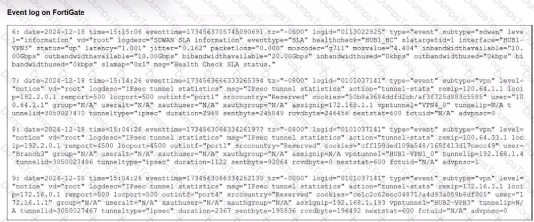 Refer to the exhibit that shows event logs on FortiGate.