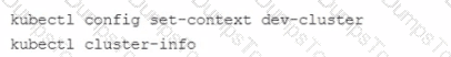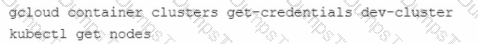 When you run the Kubect1 get nodes command, you only see the nodes from prod-cluster Which commands should you run to check the node status for dev-cluster?