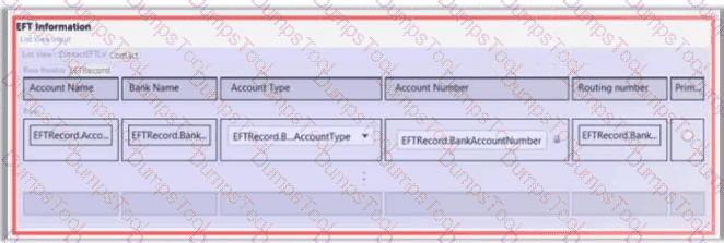 ContactManager provides an inline reference to an editable list view on the Contact Basics screen that supports adding and editing of banking information for contacts. The screenshot below shows this list view in Studio. There is an error within the red outline.