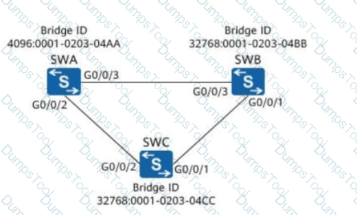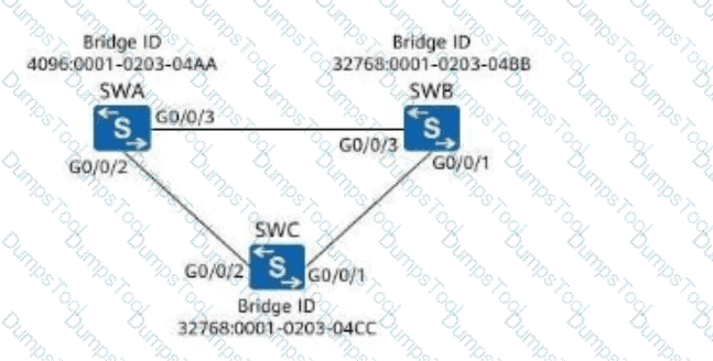 On the network shown in the following figure, assuming that SWA, SWB, and SWC retain factory defaults, which of the following ports will be selected as a designated port?