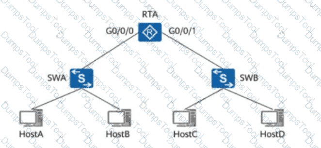 On the network shown in the figure, G0/0/0 and G0/0/1 of RTA connect to two different network segments, and RTA is the gateway between the two networks. Given this, the MAC address from which of the following needs to be obtained using an ARP Request message before HostA sends data to HostC?