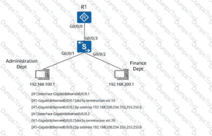According to the one-armed routing configurations shown in the figure, even if ARP proxy is disabled on the sub-interface of R1, the Administration Dept and Finance Dept can still communicate with each other.