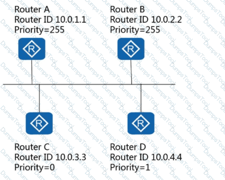 Assuming that OSPF has been enabled on all routers in the following figure, which router is the BDR on this network?