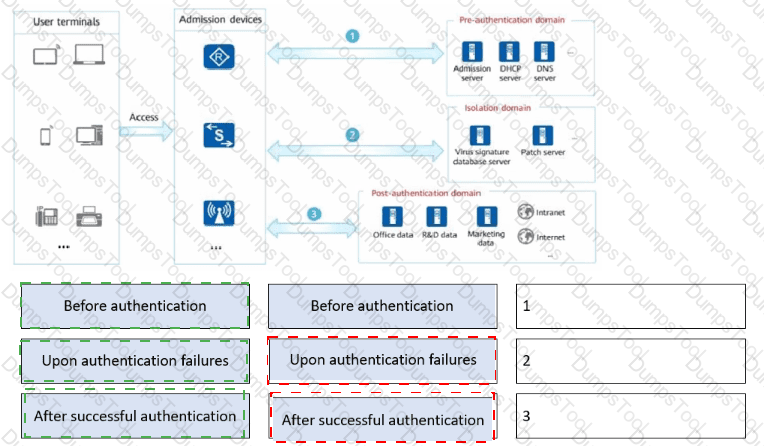 Drag the user authentication results to the corresponding network access rights.