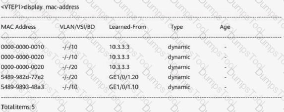 (The following figure shows the MAC address table of a Layer 2 VXLAN gateway. Which of the following statements are true?Choose all that apply.)
