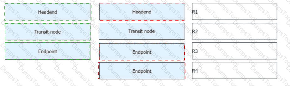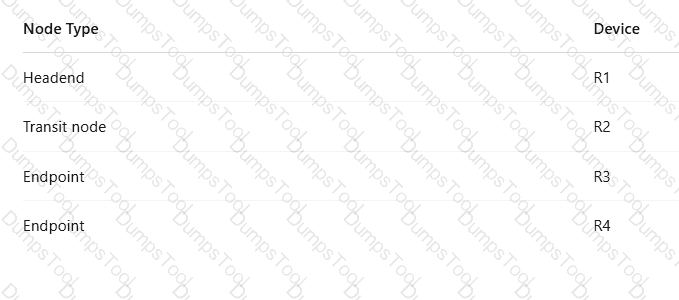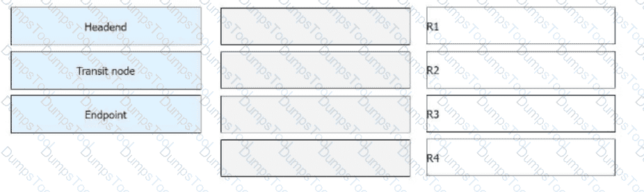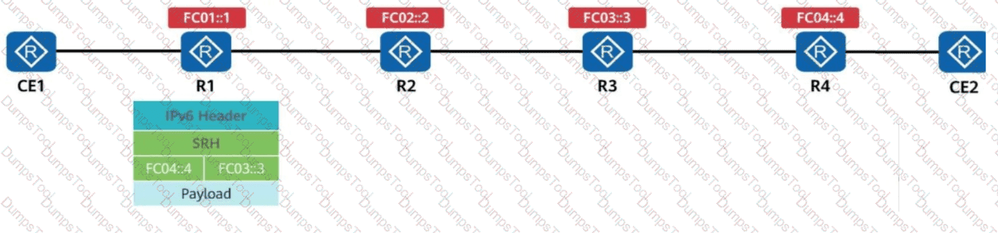 R1 receives a common IPv6 packet from the CE and generates a packet carrying the SRH (Segment Routing Header), as shown in the figure. The packet is forwarded along the path R1 → R2 → R3 → R4. Identify the node type of each device based on their role in SRv6 processing.
