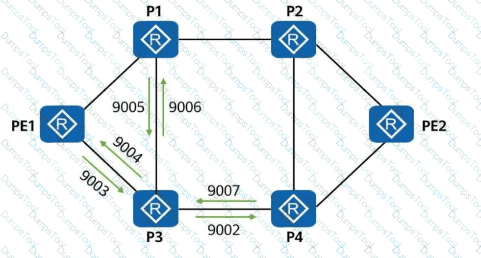 On the network shown in the figure, OSPF-based SR-MPLS TE is enabled on all routers. Which of the following adjacency labels are allocated by P3?