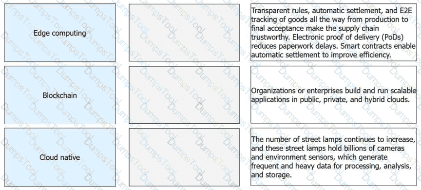 Match the emerging technologies with their respective features or application scenarios