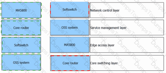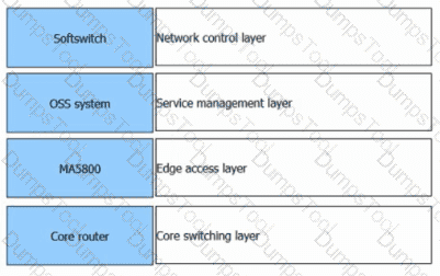 According to the NGN architecture, drag the following devices to the corresponding layers. (Score only when all the answers are correct.)