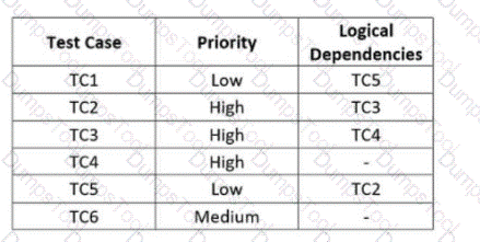 For each of the test cases to be executed, the following table specifies the priority order and dependencies on other test cases