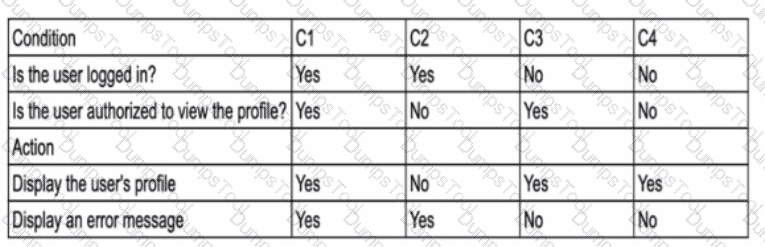 Which of the following is the minimum number of test cases needed to cover the full decision table associated with this scenario?
