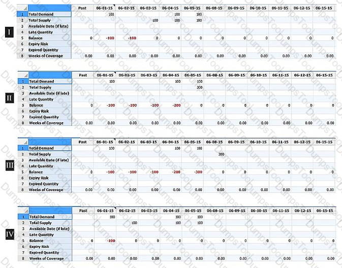 A part has demands on 06-01, 06-04, and 06-05 as shown in the exhibit. The part source has this configuration: