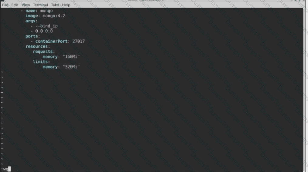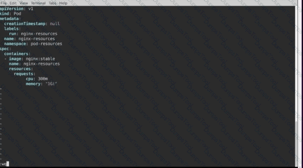 Specify a resource request of 300m cpus and 1G1 of memory for the Pod’s container.