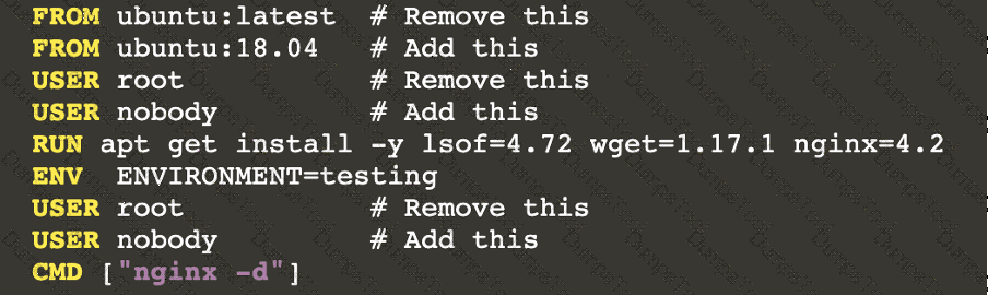 /home/cert_masters/Dockerfile fixing two instructions present in the file being prominent security/best-practice issues.