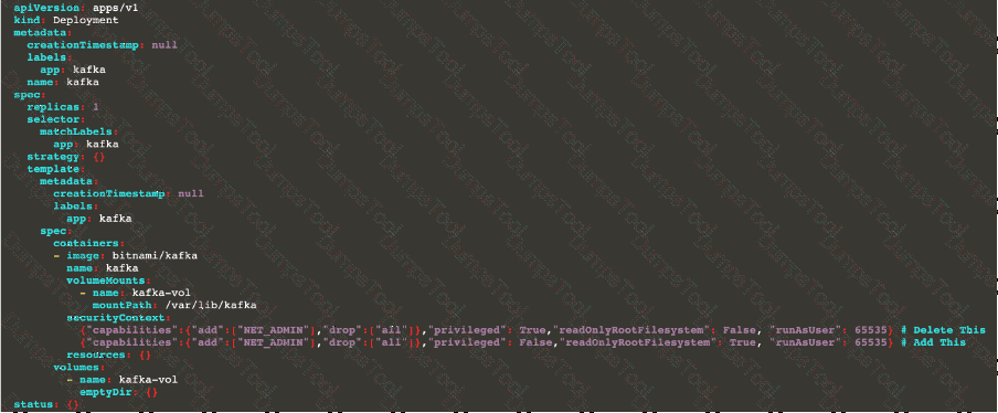 /home/cert_masters/mydeployment.yaml fixing two fields present in the file being prominent security/best-practice issues.