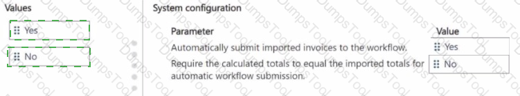 How should you configure the system? To answer, move the appropriate Value to the correct Parameter. You may use each Value once, more than once, or not at all. You may need to move the split bar between panes or scroll to view content.