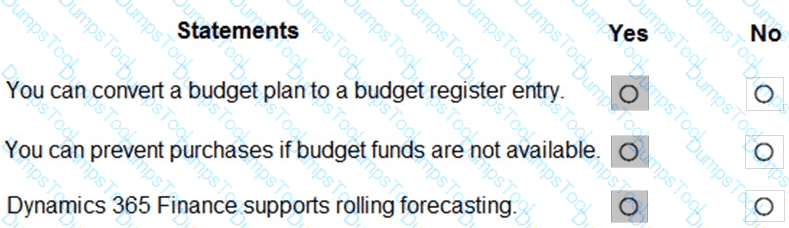 Instructions: For each of the following statements, select Yes if the statement is true. Otherwise, select No.