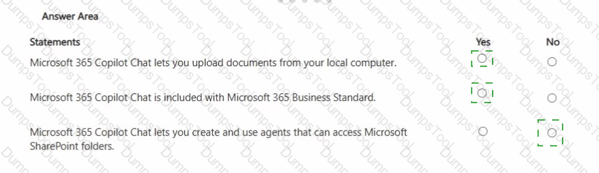 For each of the following statements, select Yes if the statement is true. Otherwise, select No.