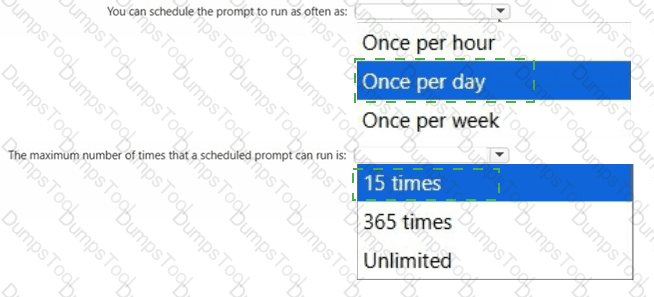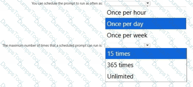 What are two limitations of prompt scheduling in Microsoft 365 Copilot? To answer, select the appropriate options in the answer area.