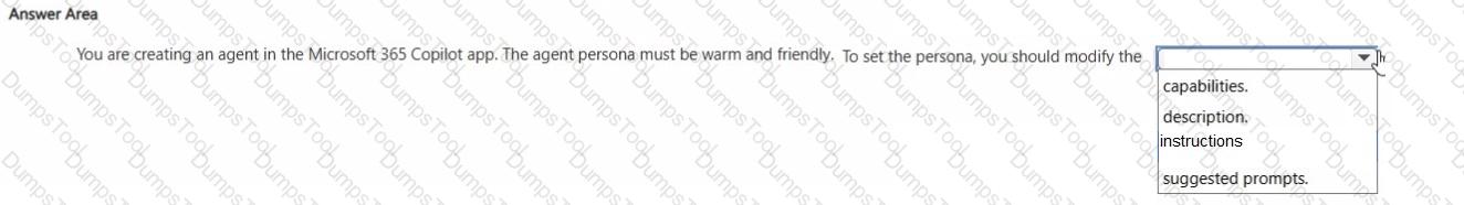 You plan to create an agent by using the Microsoft 365 Copilot app.