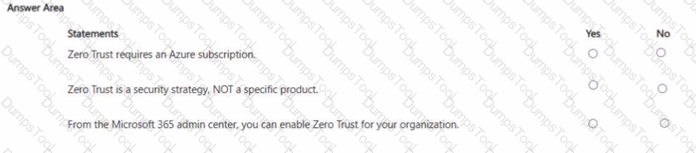 For each of the following statements, select Yes if the statement is true. Otherwise, select No. NOTE: Each correct selection is worth one point.