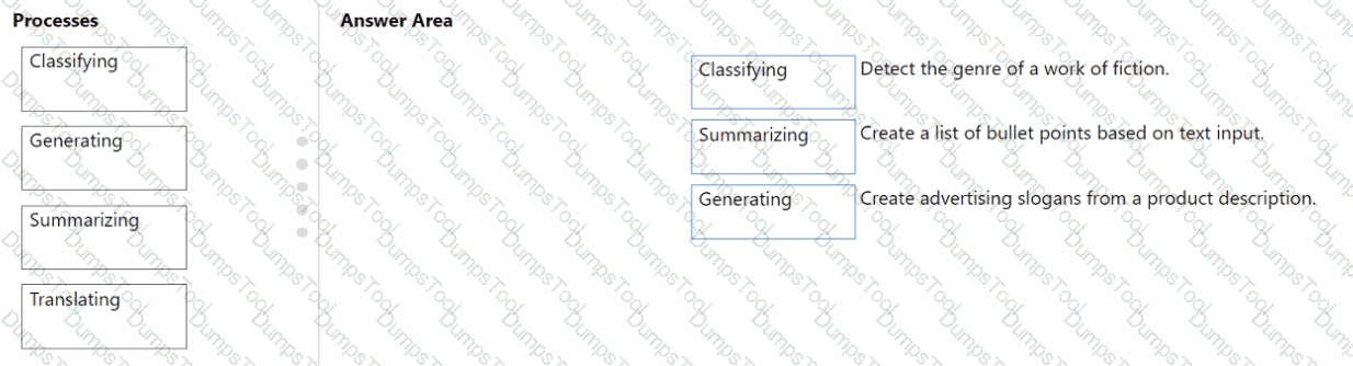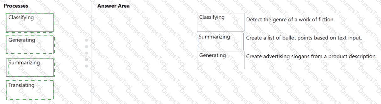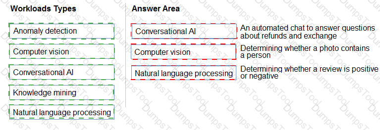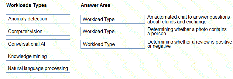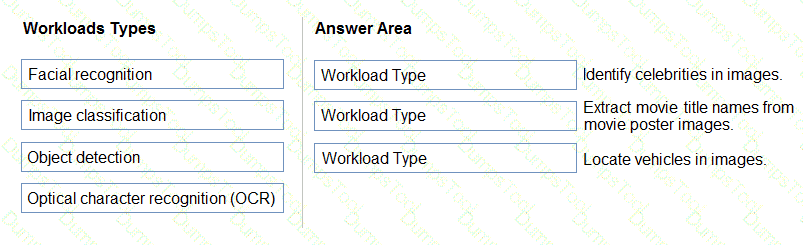 To answer, drag the appropriate Ai workload from the column on the left to its task on the right. Each workload may be used once, more than once, or not at all.