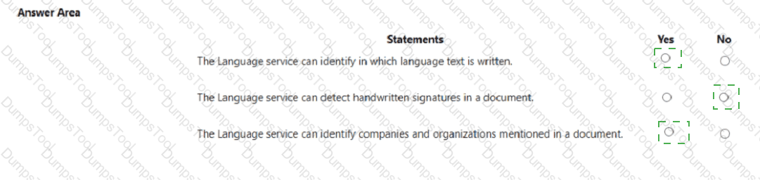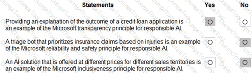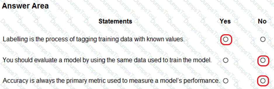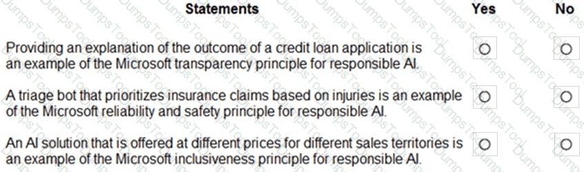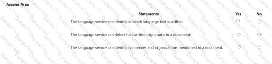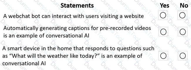 For each of the following statements, select Yes if the statement is true. Otherwise, select No.