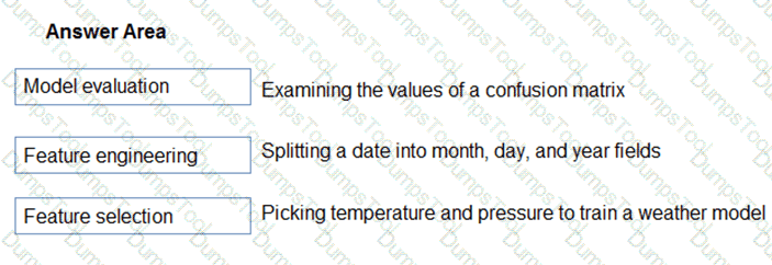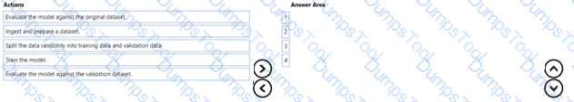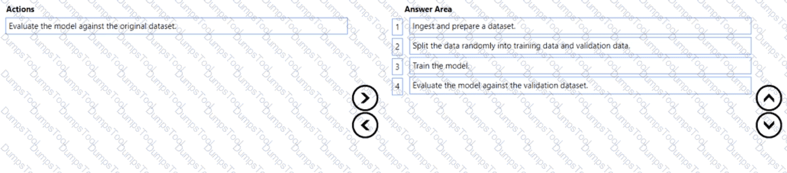 Therefore, based on the official AI-900 learning objectives, the verified and most accurate answer is B. creating training and validation datasets.