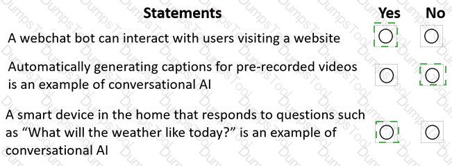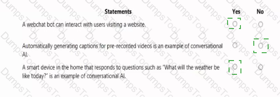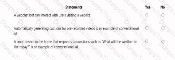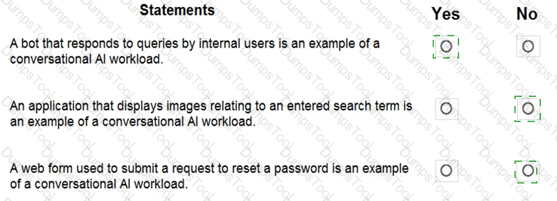 “A web form used to submit a request to reset a password is an example of a conversational AI workload.” → NOA password reset form is a simple UI-driven process that doesn’t require AI or conversational logic. It performs a fixed function based on user input but does not understand or respond to natural language.