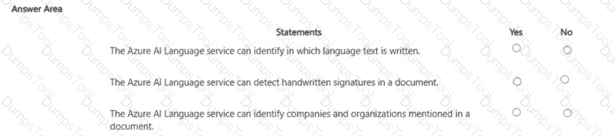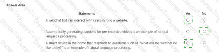 For each of The following statements, select Yes If the statement is true. Otherwise, select No.
