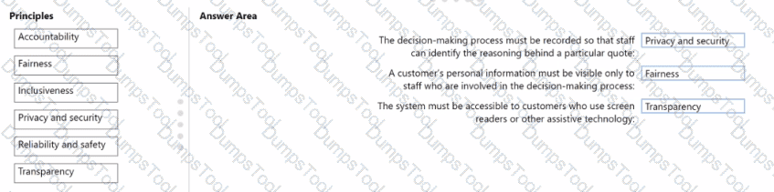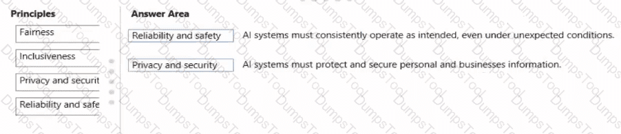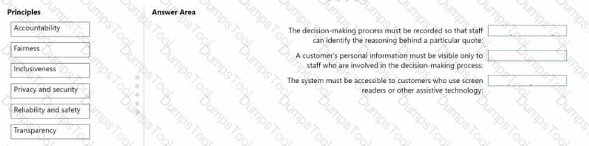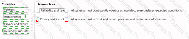Match the Microsoft responsible Al principles to the appropriate requirements.