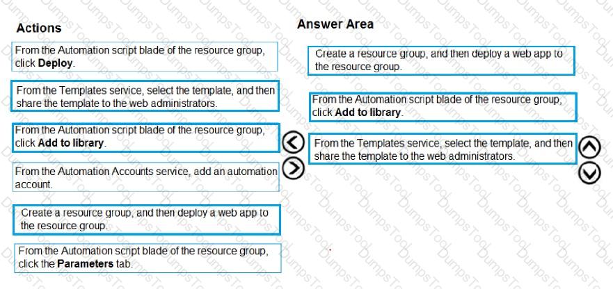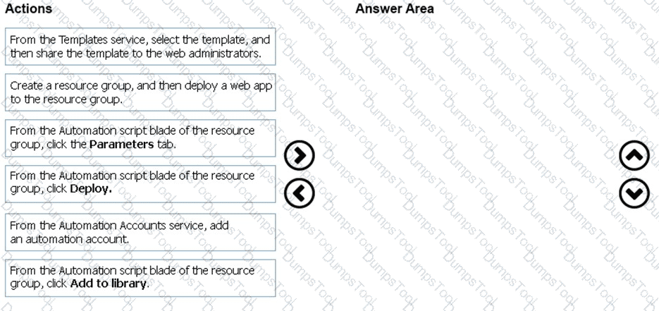 In which order should you perform the actions? To answer, move all actions from the list of actions to the answer area and arrange them in the correct order.