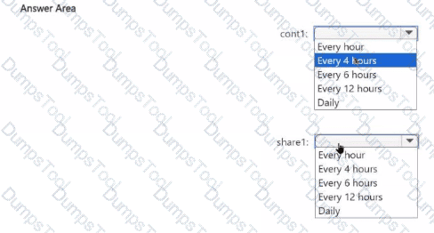 To what should you set the backup frequency for each resource? To answer, select the appropriate options in the answer area.