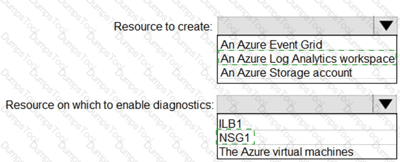 Subnet1 is associated to a network security group (NSG) named NSG1. Subnet1 contains a basic internal load balancer named ILB1. ILB1 has three Azure virtual machines in the backend pool.