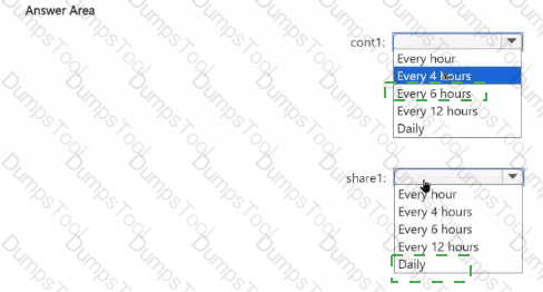 You need to configure Azure Backup to meet the technical requirements for cont1 and share1.