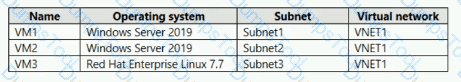 You have an Azure subscription that contains the Azure virtual machines shown in the following table.