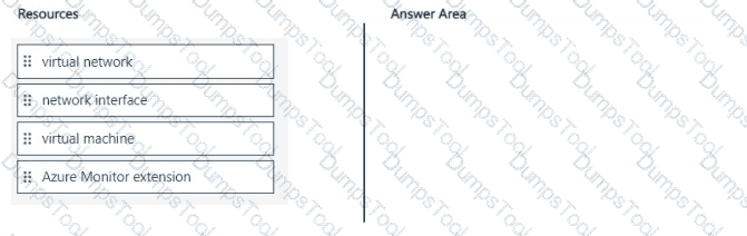 In which order should you deploy the resources? To answer, move all resources from the list of resources to the answer area and arrange them in the correct order.