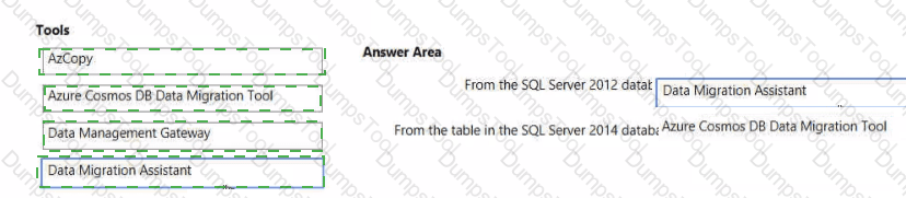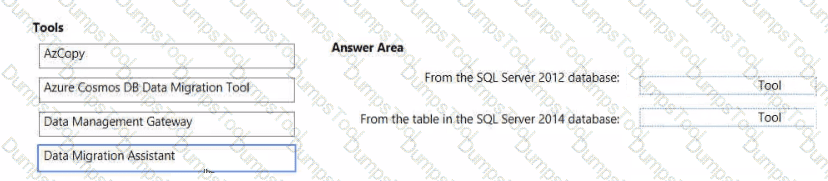 What should you recommend using to migrate the data? To answer, drag the appropriate tools to the correct data sources-Each tool may be used once, more than once, or not at all. You may need to drag the split bar between panes or scroll to view content.