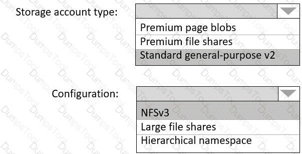 Which type of storage should you recommend, and how should you recommend configuring the storage? To answer, select the appropriate options in the answer area.