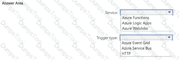 You need to recommend a service to host App2 and the type of trigger to use to call App2. The solution must minimize development effort.