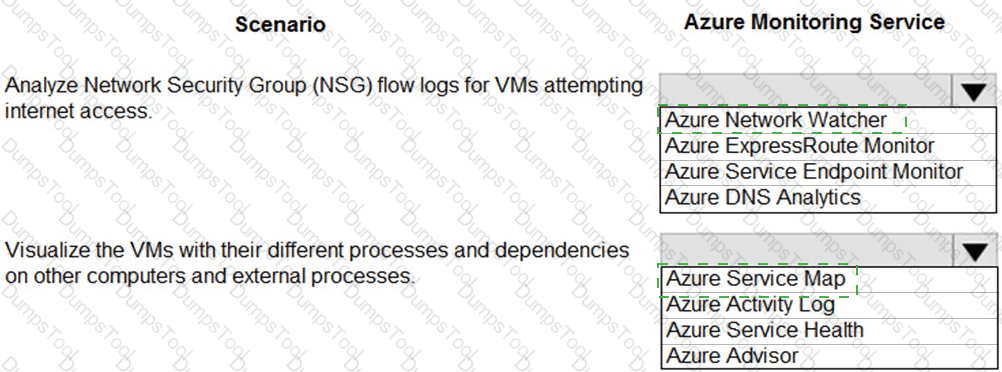 Your company deploys several Linux and Windows virtual machines (VMs) to Azure. The VMs are deployed with the Microsoft Dependency Agent and the Microsoft Monitoring Agent installed by using Azure VM extensions. On-premises connectivity has been enabled by using Azure ExpressRoute.