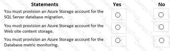 You are evaluating the components of the migration to Azure that require you to provision an Azure Storage account.