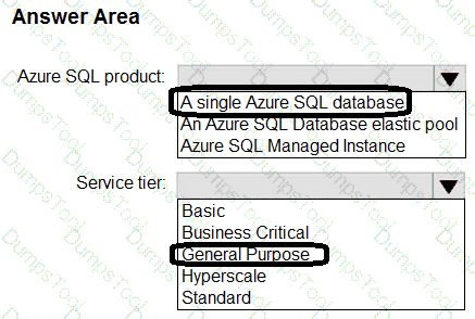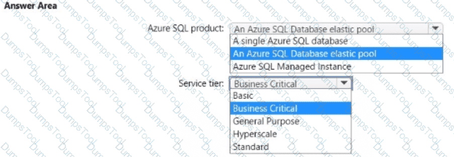 You need to recommend an Azure SQL product and service tier that meets the following requirements:
