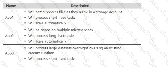 You are designing a solution for containerized apps. The solution must meet the following requirements: