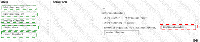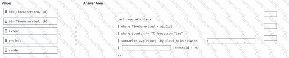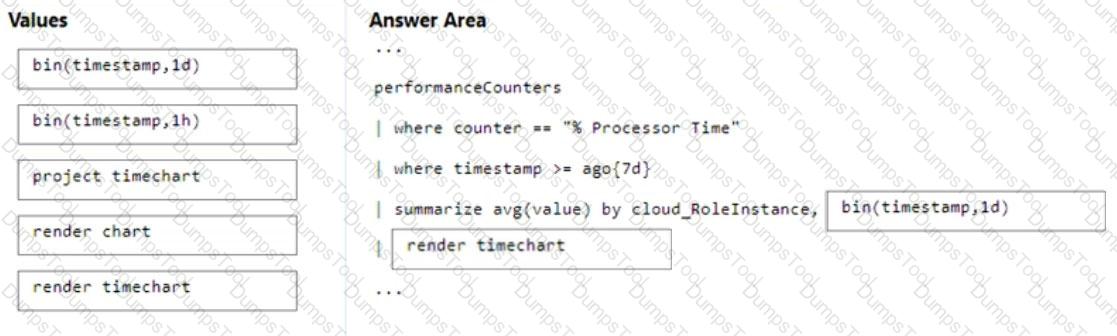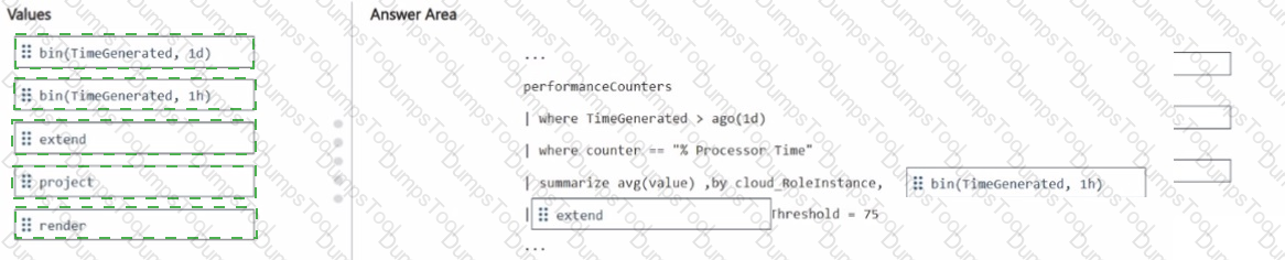 How should you complete the query? To answer, drag the appropriate values to the correct targets. Each value may be used once, more than once, or not at all. You may need to drag the split bar between panes or scroll to view content.
